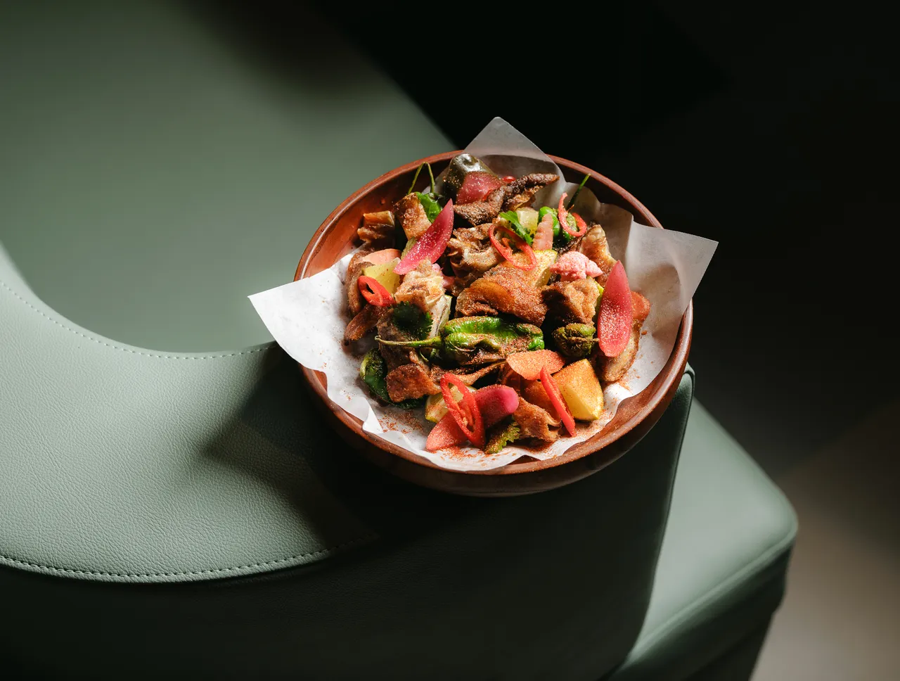 Wir sind informell, aber wir lieben das Beste vom Besten und bevorzugen deshalb die besten frischen Produkte der Region. Wir sind bescheiden. Wir bieten eine einfache Speisekarte mit modernen, angenehmen Gerichten mit Comfort Food, die wir auf dem offenen Feuer zubereiten – entweder in unserem Holzofen oder am Kamin.
